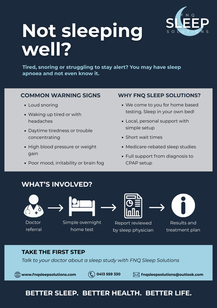 Welcome to FNQ Sleep Solutions — your trusted partner for comprehensive, at-home sleep testing and personalised sleep apnoea treatment in Far North Queensland.